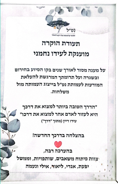 המלצות ותעודות הוקרה